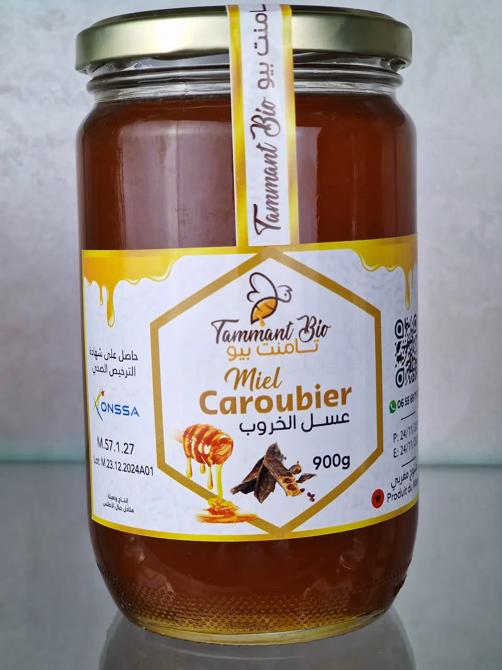 عسل الخروب المغربي العضوي ء 450 غرام (15.87 أونصة) | مُحلي متوسطي طبيعي